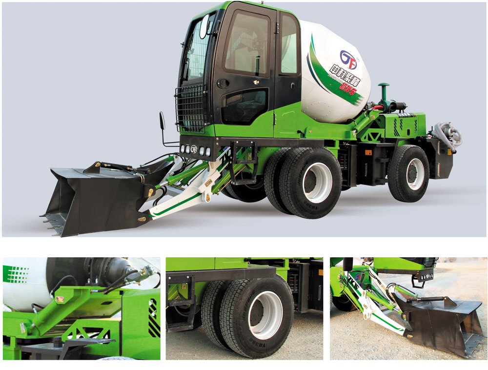“重型”球形鞍座上安裝的反力架可以180°液壓旋轉(zhuǎn),并且通過(guò)液壓式制動(dòng)器自動(dòng)鎖止。滾筒旋轉(zhuǎn)通過(guò)柱塞泵和閉路中的柱塞液壓馬達(dá)實(shí)現(xiàn),在操作室內(nèi)和攪拌機(jī)后部擁有手動(dòng)電氣閥。